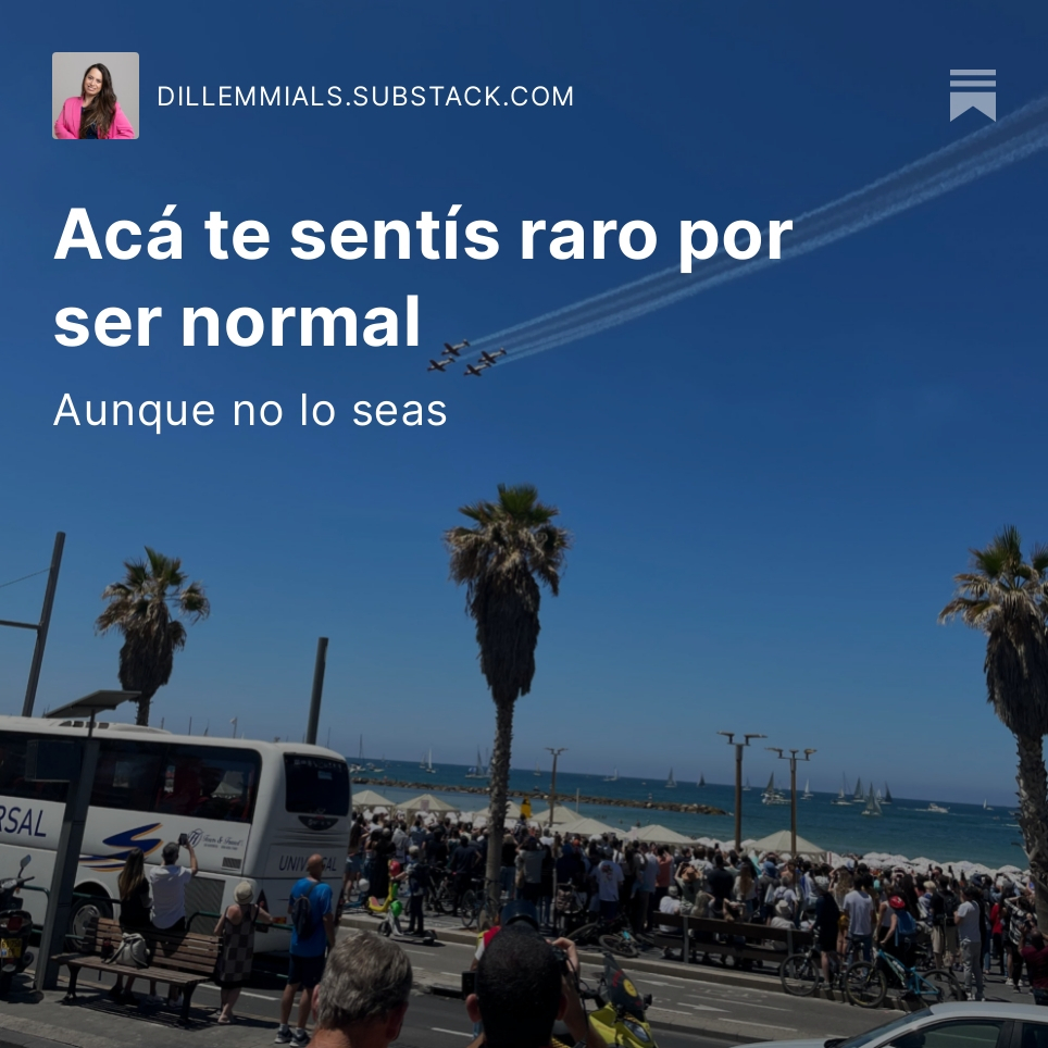 ¡Hola! Bienvenidxs a este newsletter dominical que mezcla migración, política en Israel, feminismo, consumos culturales y argentinidad. Básicamente dillemmials, una palabra que me inventé para hablar de las cosas que me pasan.